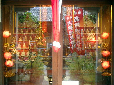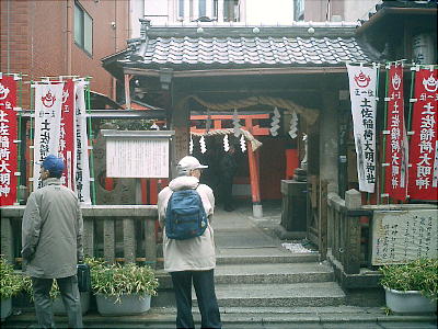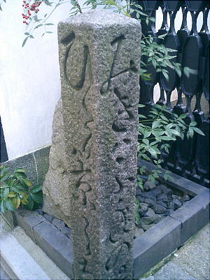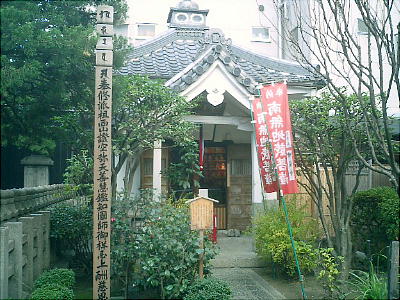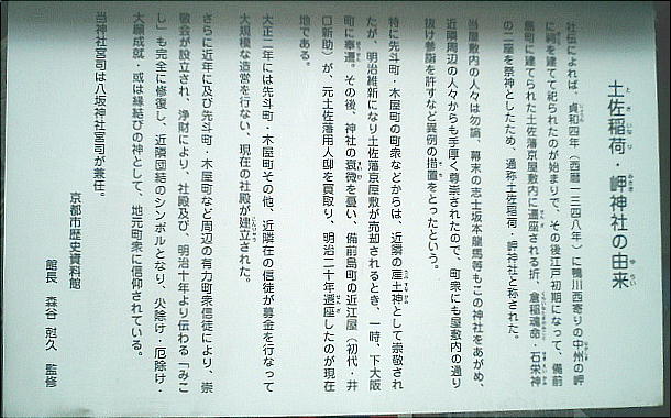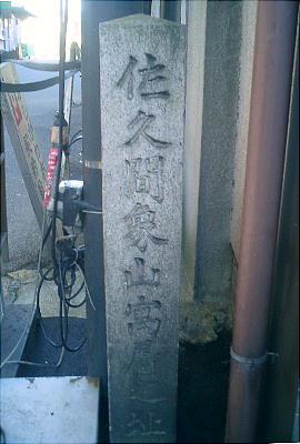入った通りの、高瀬川から10m程の所にひっそりとある。石柱はひっそりしているが、廻りは風俗店がひしめいている。