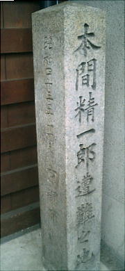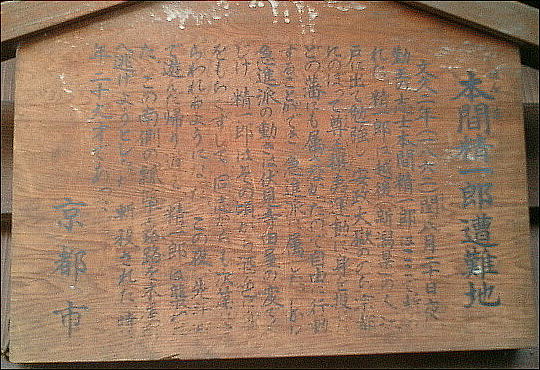 木屋町通りを三条から四条通りへ歩いていくと、左手に「本間精一郎遭難の地」という石碑がある。本間精一郎(1834〜