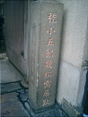 高瀬川畔・二条から四条の木屋町界隈は、幕末の旧跡が目白押しだが、そのすべてが石柱のみである。「寓居跡」「遭難