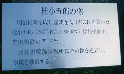 高瀬川を挟んで、料理旅館「幾松」とは反対側に京都ホテルが立っている。ここに桂小五郎像が立っていて、ここが長州