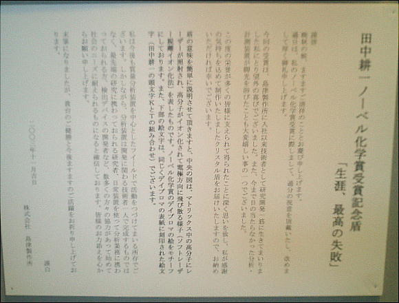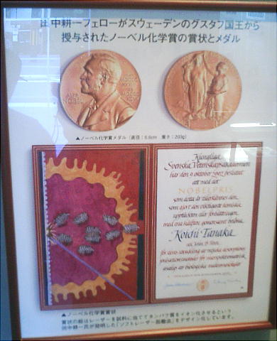 きっちり田中耕一氏のノーベル賞関係の資料もある。下右は島津の創業者島津(井上)源蔵。