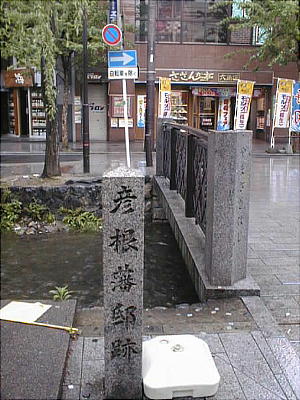 高瀬川沿いには藩邸の跡がいくつかある。勿論例によって今は石碑が一本残るのみだが、土佐、加賀、彦根の各藩邸跡が