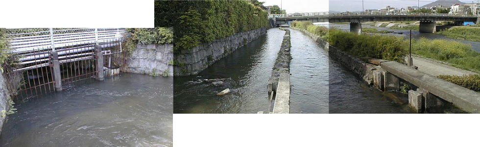 曲がりくねった水路となり、ほぼ中間で鴨川を横断していた。当初は川幅も約8mで水量も多く、深さも30cm以上あ