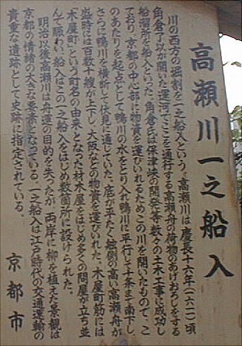 そういう訳で、ここでの解説の大部分は、以前私が一人で行った「京都慕情−高瀬川物語−」から転載した。今回新たに遺跡の写真を