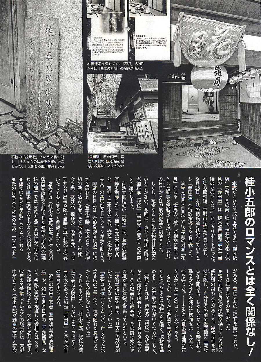 幕末の旧跡をこうやって眺めてくると、その領域の極めて狭いのに驚かされる。暗殺された場所と、寝泊まり、飲み食い