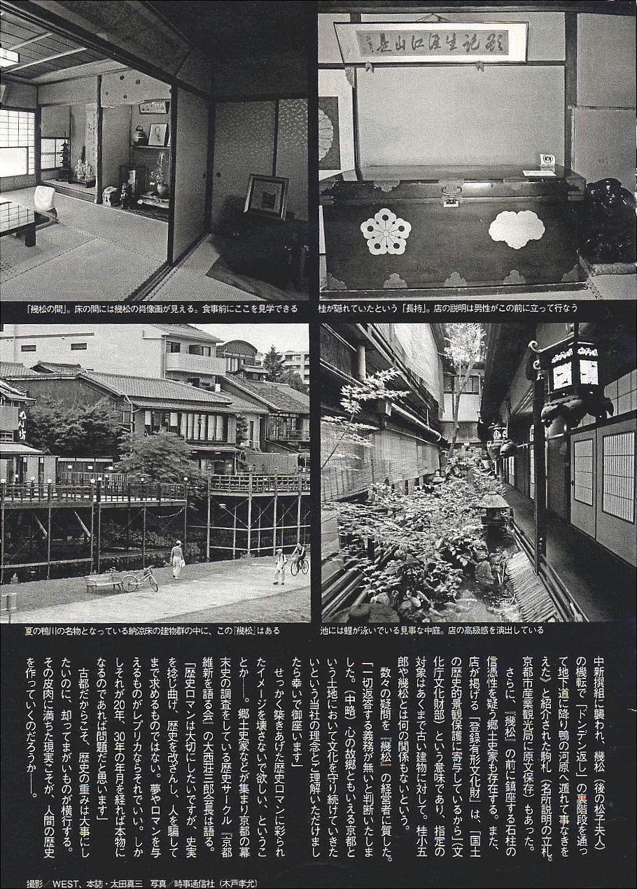 ともないだろうし、絵や写真を見て別な世界に遊ぶことなど出来はしない。幕末の木屋町は、二条から四条辺りに長州や