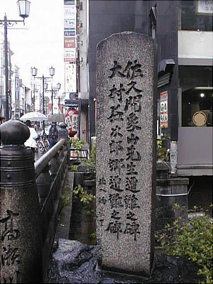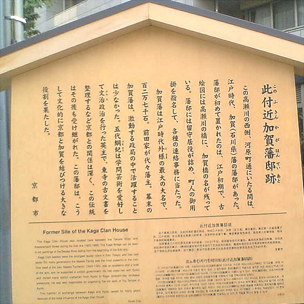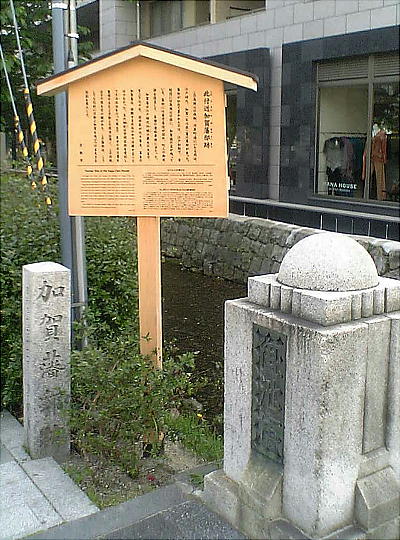 高瀬川沿いには藩邸の跡がいくつかある。勿論例によって今は石碑が一本残るのみだが、土佐、加賀、彦根の各藩邸跡が石