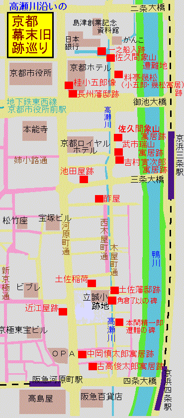 幕末の旧跡をこうやって眺めてくると、その領域の極めて狭いのに驚かされる。暗殺された場所と、寝泊まり、飲み食いし
