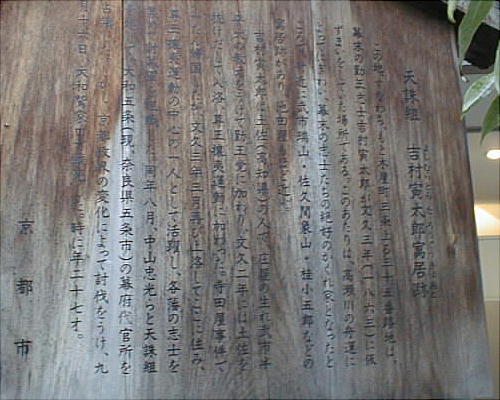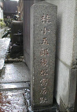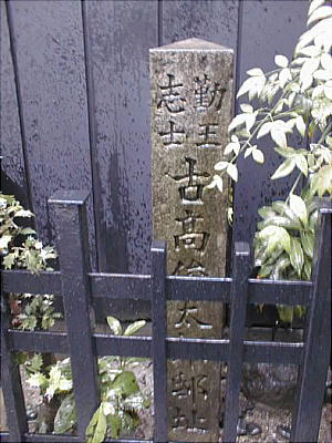 新撰組が池田屋の尊攘派志士達を襲撃した事件の原因となった、古高俊太郎の邸宅跡である。四条通りから1,2本北に入