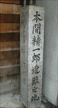 木屋町通りを三条から四条通りへ歩いていくと、左手に「本間精一郎遭難の地」という石碑がある。本間精一郎(1834〜62)