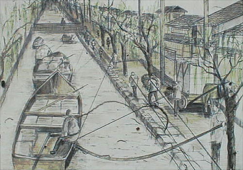 までの間に九つ設けられ、荷物の積み卸しや舟の方向転換の場所となっていた。高瀬舟は、浅い川でも航行できるように、
