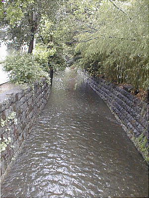 がりくねった水路となり、ほぼ中間で鴨川を横断していた。当初は川幅も約8mで水量も多く、深さも30cm以上あった