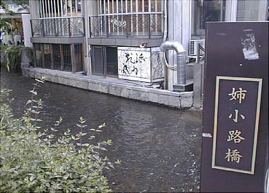 を取りこわして道路を拡張し、また明治43年(1910)には高瀬川を1mほど埋立てて木屋町を西側にも拡張したので、今