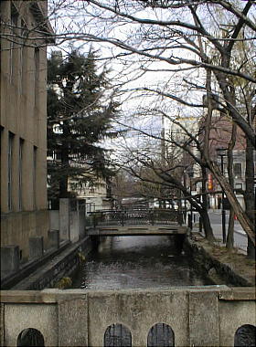 現在の高瀬川。上と下をつなげて、二条から五条までとなる。