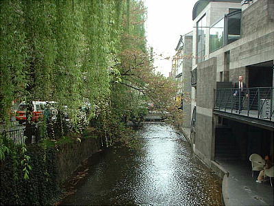 高瀬川・木屋町界隈の散策は、四条あたりを除けば人通りがそれほど多くなく、全体的に落ち着いたたたずまいを見せてい