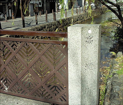 高瀬川は木屋町通の西を流れているが、木屋町という名は、ここに材木業者が多かったことに由来している。ここから高瀬