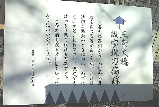 にした。新撰組では沖田総司が、刀の先端が折れるほど大活躍し、宮部鼎蔵らの返り血で衣服が染まったと言う。(永倉新