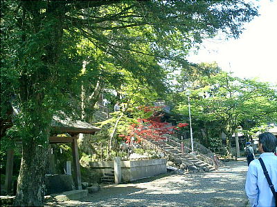 山門の両脇に鎮座するのは通常の寺社では仁王像というのが一般的だが、ここは能楽師である。さすが「能」の神社だ。