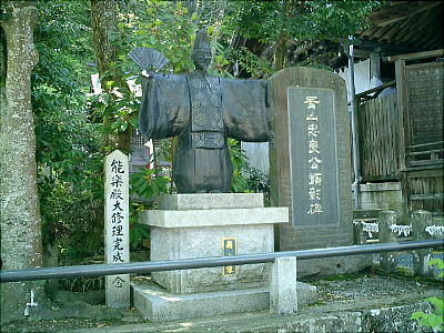 能が好きだった第13代篠山藩主青山忠良の碑(上右)。