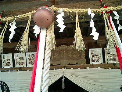 上左が、藩主青山忠良が寄進した能楽堂。右は絵馬殿。