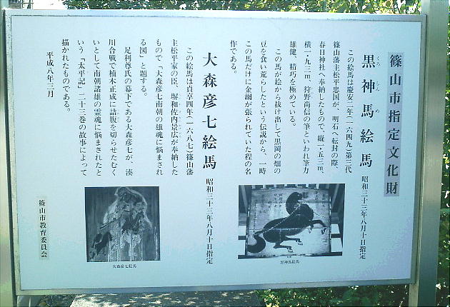 面の絵馬が展示されているが、中でも「黒神馬」、「大森彦七南朝の雄魂に悩まされる図」は名作といわれている。