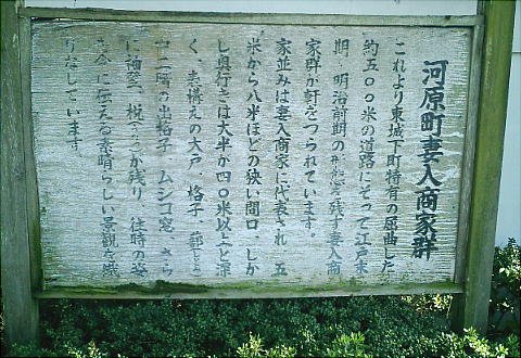 河原町妻入商家群は、城下町篠山の商業の中心だった。河原町はいかにも旧街道といった町並みで、篠山城築城後まもなく町づ