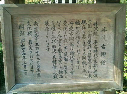 はもとより中世から近世にかけての能面、装束、楽器など貴重な品々を展示する能楽資料館、山車を治めた鳳凰山、丹波古陶館、