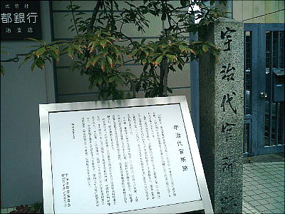 宇治駅近くの商店街で、打ち上げできそうな店を探している時見つけた「宇治代官所跡」。今は京都銀行の敷地内である。