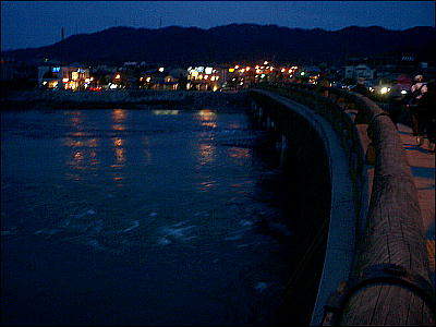 宇治橋の向こうのネオンが川面に写って綺麗だった。みなさん、本日もお疲れさまでした。また次回も宜しく。