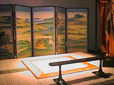 <貴族の館再現>宇治の地に立ち寄った薫が、閑寂な八宮邸に住んでいる大君・中君を見初める、宇治十帖の中の「橋姫」