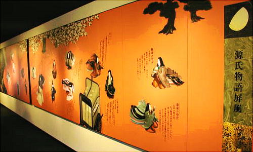 館内は、映像展示室と二つの部屋からなる常設展示室をはじめ、企画展示室などがあり、図書室では源氏物語に関する図書