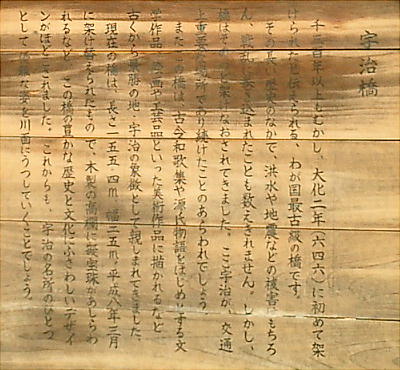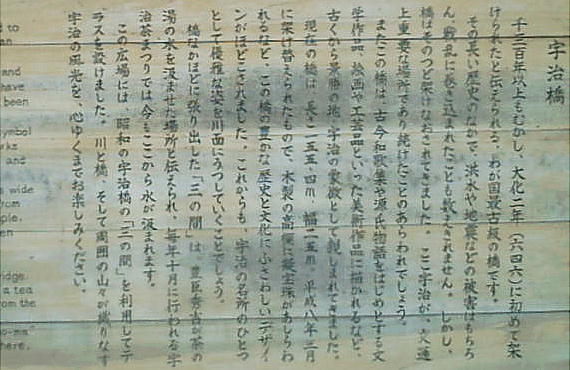 向かう主要街道上にあり、古来多くの文献に登場する。万葉集にも多くの宇治川を詠んだ歌があり、「源氏物語・宇治十帖』」や