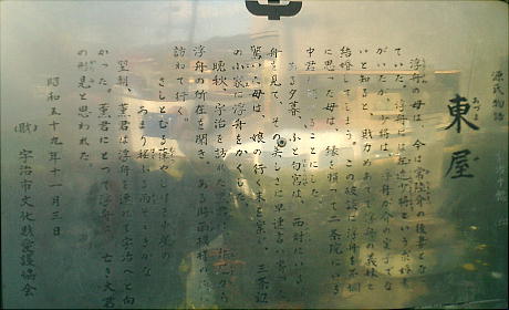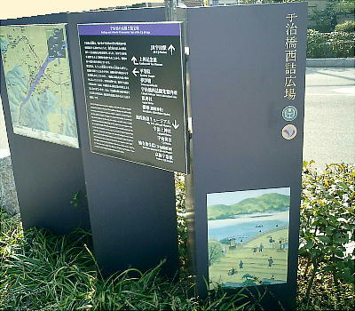 その時代既に宇治が別業として繁栄していた事をあらわしているのだろう。宇治川沿いには、「源氏物語・宇治十帖」の舞台が点