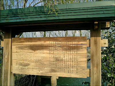 宇治橋を渡って西詰に観光案内所がある。その隅にひっそりと「夢浮橋(ゆめのうきはし)之古蹟碑」がある。昭和63年に現在の