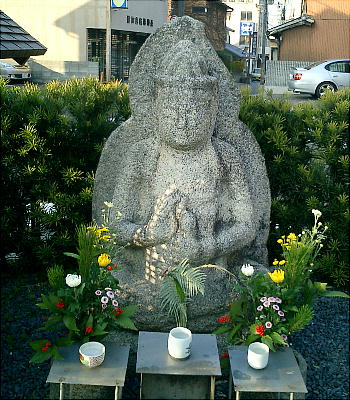供えられていて、今日も地元のおばさんが一心にお祈りしていて、深い信仰が伺える。花崗岩に厚肉彫りされていて、風化がかな