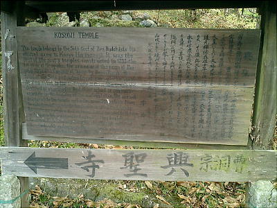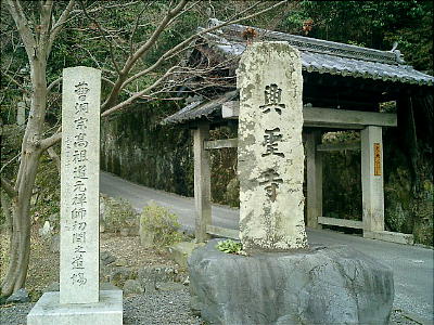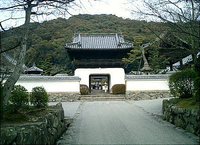 2,3分で琴坂を上りきると、門の中から本堂以下の創建当初の諸堂が見える竜宮形の楼門薬王門に至る。 興聖寺は、元福元年(12