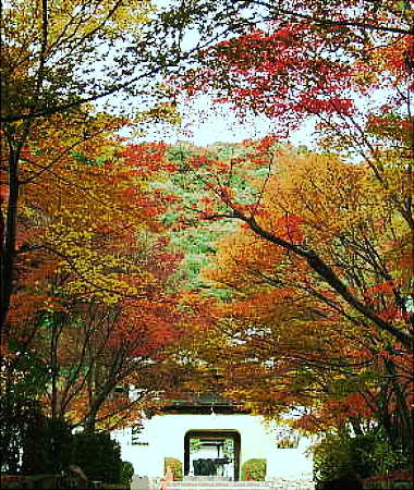 その脇に、宋風の興聖寺への山門がある。門をくぐると、なだらかな「琴坂」と呼ばれる参道が寺に向かって一直線に延びている。