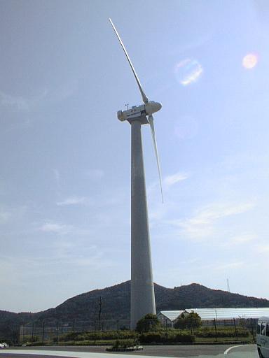 三崎港に着く。三崎港から八幡浜のちょうど中間位の所にこの風車(風力発電機)が一機立っていた。蝋燭と古い