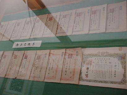 大正時代の開業当時から経営にはだいぶ苦労していたようだ。債権や株券が多数展示してあった。下は、内子の