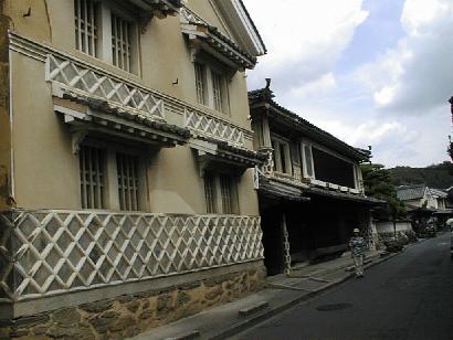 町並み。内子の蝋燭は、和蝋燭として広く海外にも輸出され蝋燭成金が大勢いた。それらの豪邸や蔵が今も内子