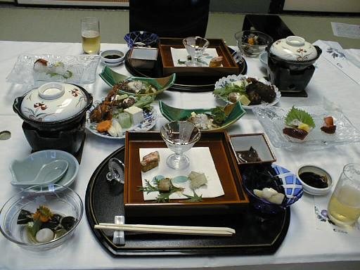 泊まった道後温泉の宿の食事。10数階建てのビルみたいな宿だったが屋上に露天風呂があった。