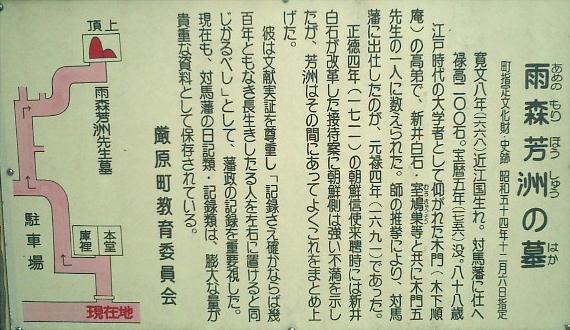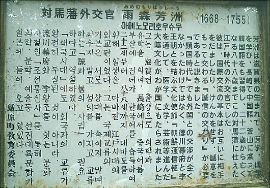 時代の日韓友好の歴史を説いて、今後の日韓関係の発展を望む演説をした。雨森芳洲は88歳で対馬に没した。