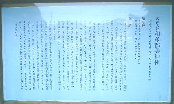 神社であるとされる。この神社のさらに北方に海神神社があり、一之宮はこちらだという説もあるが、いずれにしても、