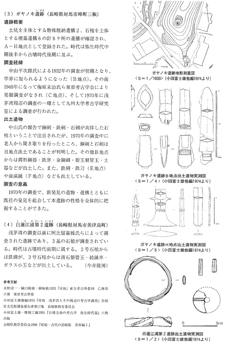 る。昭和6年(1931)に対島を訪れた中山平次郎は、三根の松村文次郎氏宅に所蔵されていたガヤノキ出土の石剣、銅剣、