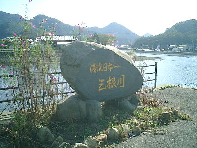 を何カ所か見る予定で、この町で昼食をとる事にした。食堂の前を三根川が流れており、国道に面していた。食事の後、