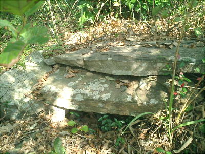 そこに古墳の石室の蓋のようなものがあった。馬野さんが覗きこんでいる。