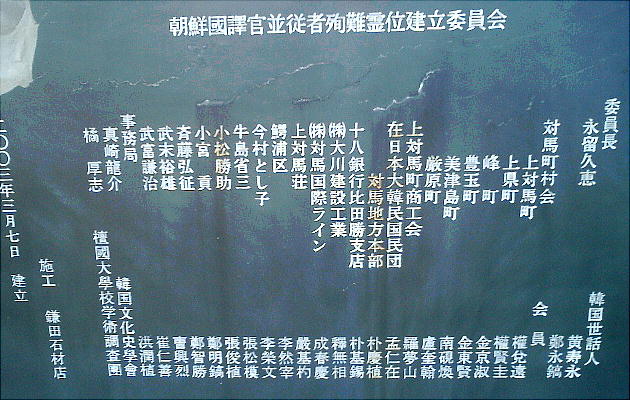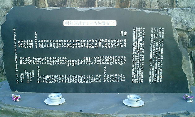 「朝鮮国訳官使殉難之碑」の表(上)と裏(下)。