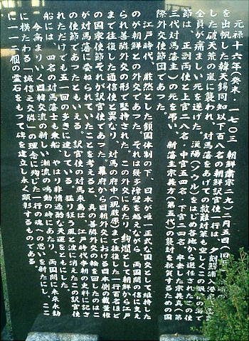 域内に「朝鮮国訳官使殉難之碑」があり、通信使の被った遭難を悼んでいる。元禄16年(1703)旧暦2月5日朝、訳官使