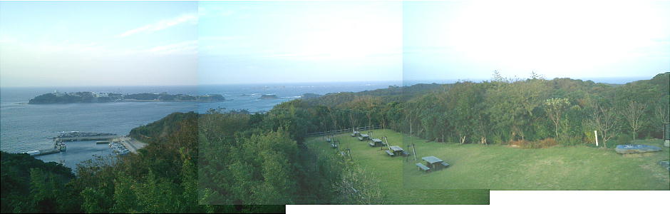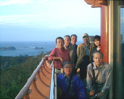 展望所に立って、みんな釜山が見えないかと必死に目をこらしたが残念ながら今日は見えない。釜山方向に航空自衛隊の