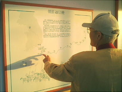 一行108名と4名の対馬藩士らの乗った訳官使船は、釜山から対馬に向け出発したが、急変した天候のため鰐浦を目前